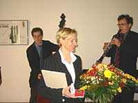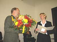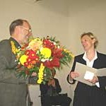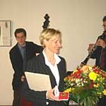 Und im gleichen Atemzug möchte ich auch der einzigen weiteren Persönlichkeit danken, deren Verdienste sich hinter all dem nicht zu verstecken brauchen, und die es verdient, sich die Preusker-Medaille mit unserer Regina zu teilen: ich meine die Wissenschaftlerin Dr. Regina Peeters, die vor einem Jahr eine Dissertation vorgelegt (fast hätte ich gesagt: hingelegt) hat, deren Umfang sogar für ihren Spezialgriff eine Herausforderung darstellt. Auf über 500 Seiten hat sie die typischen Informationsbedürfnisse literarischer Übersetzer analysiert und mit der geballten Erfahrung von über zwanzig Jahren Praxis ein Modell entworfen, wie die ideale Bibliothek hierfür beschaffen sein sollte. Ganz zu schweigen von einer Fülle weiteren aufschlußreichen Materials, das sie aus Bescheidenheit in eine beiliegende CD-ROM verbannt hat, um Akademiker, die eine Habilitationsschrift verfassen wollen, nicht sogleich angesichts einer mehrbändigen Dissertation in die Depression zu treiben.