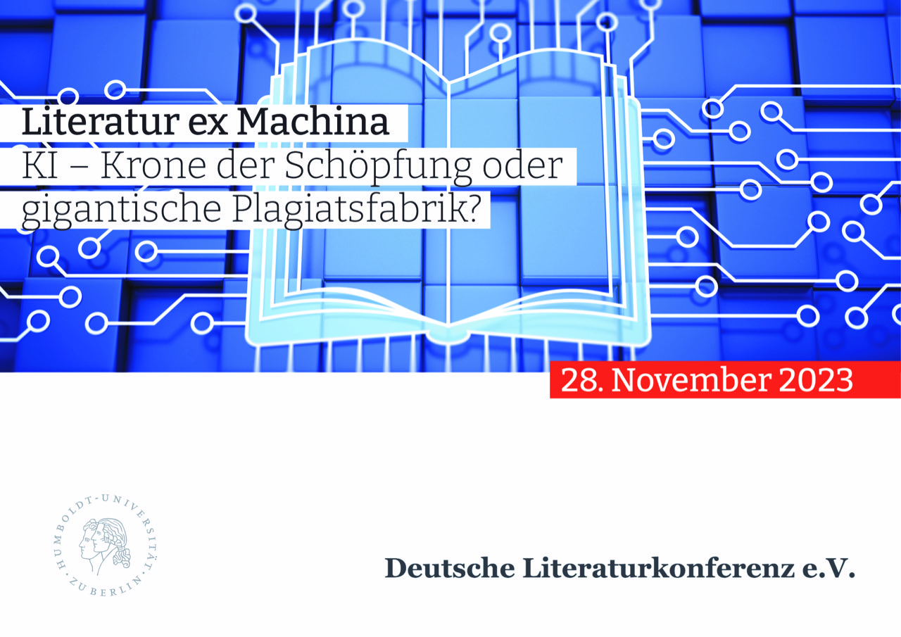 Am 28. November 2023 fand das Symposion der Deutschen Literaturkonferenz „KI – Krone der Schöpfung oder gigantische Plagiatsfabrik“ ganztägig Berlin in Auditorium im Jacob-und-Wilhelm-Grimm-Zentrum der Humboldt-Universität zu Berlin statt. Zahlreiche Gäste aus der gesamten Branche folgten der Einladung.